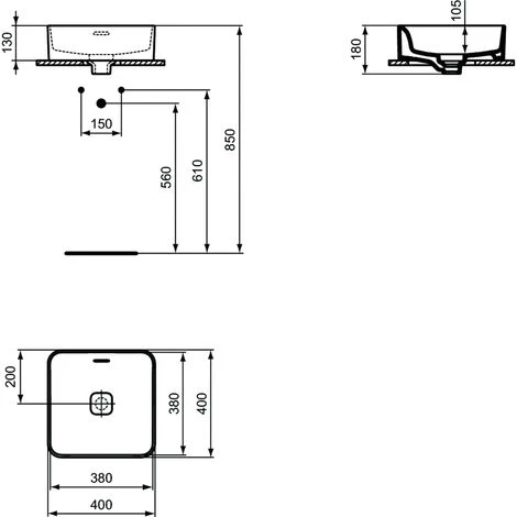 Lavabo à poser 40×40 cm Ideal Standard Strada II art. T296301 sans trou pour robinet