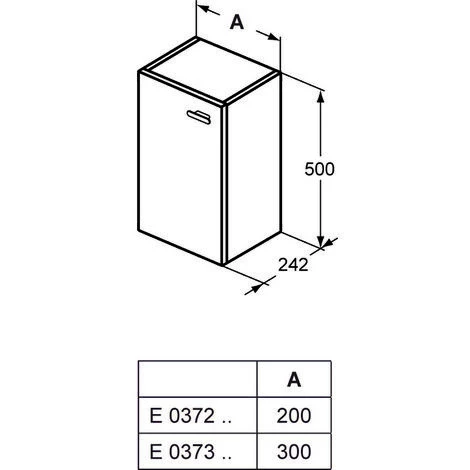 Armoire latérale pour lave-mains avec kit de fixation. Une seule porte. Charnière de porte au choix à droite ou à gauche. Une tablette en verre peut également être combinée avec l’armoire latérale. Finition : Noyer Décor Dimensions (LxPxH) : 200x242x500 mm Montage : vis et chevilles comprises pour montage mural Poids : 6,7 kg Fabricant : Ideal Standard Series : Connect Space Pièce n° : E0372DK Accessoires en option : Etagère en verre blanc (E0362SA) Tablette en verre gris (E0362RU) Tablette en verre brun (E0362RP)