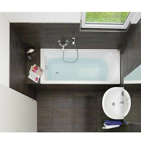 Acrylique sanitaire coloré en blanc 4 mm Manteau extérieur renforcé en fibre de verre Certifié TÜV selon EN 198 Renforcement stratifié du bord de baignoire et de la sol au sol 1 inclinaison dorsale Trou d’écoulement et trop-plein positionnés latéralement Montage possible par coffrage, pieds de baignoires ou tablier Sans garniture d’écoulement ni trop-plein Sans pied de baignoire, ni tablier