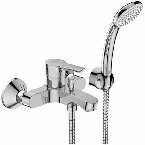 Mitigeur monocommande extérieur pour baignoire/douche avec raccords en s orientables pour entraxe de 129 mm à 171 mm. Cartouche de 35 mm avec limiteur de température. Il est livré avec une douchette à 1 fonction, un support mural et un tuyau flexible de 1500 mm. | Livraison gratuite sous 2 à 5 jours ouvrés. Garantie 2 ans pièce mains d’œuvre et déplacement. PAS DE LIVRAISON EN DOM-TOM