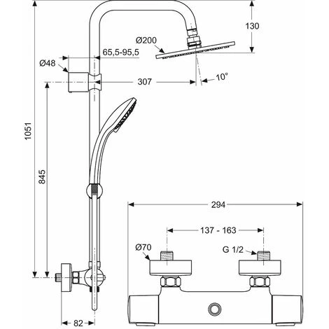 Caractéristiques de la Colonne de douche thermostatique Ideal Standard Ceratherm 100, 3jets, 1,75 m, chromé (A5686AA) :