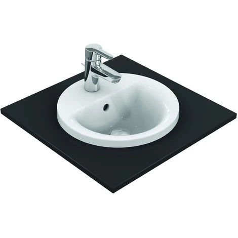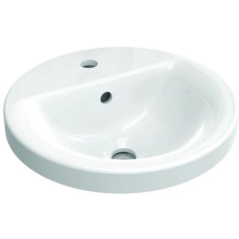 - Lavabo à encastrer de forme ronde équipé d’un trop plein et d’un trou de robinetterie.