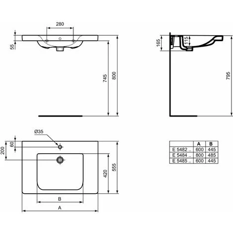 - Le lavabo a une conception ergonomique qui permet aux avant-bras de se reposer sur les bords latéraux larges de 77,5 mm.