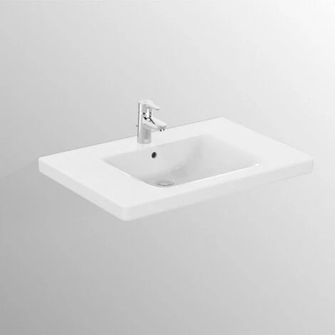 - Le lavabo a une plage arrière plane avec trou de robinetterie et avec trop plein.