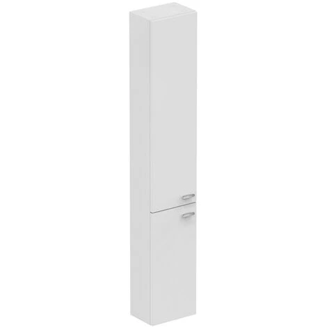 Armoire haute avec kit de fixation. Deux portes. Charnière de porte au choix à droite ou à gauche. 5 tablettes en verre réglables (3 en haut, 2 en bas). Saillie particulièrement faible de 210 mm. Surface : Noyer Décor Dimensions extérieures (LxPxHxP) : 300x210x1750 mm Fixation : avec vis et chevilles pour fixation murale Poids : 21,0 kg Fabricant : Ideal Standard Series : Connect Space Pièce n° : E0379DKK