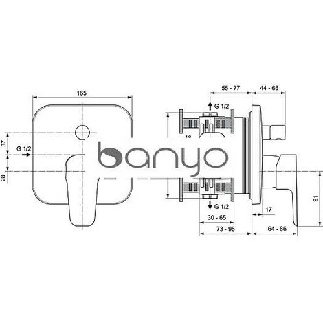 Plaque de finition: 165 x 165 mm