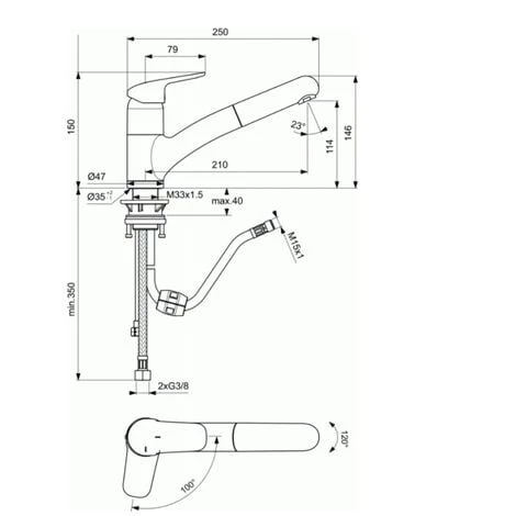 Caractéristiques du Mitigeur pour évier, bec bas + Douchette extractible, fixation rapide EasyFix, Ideal Standard Giovo S :