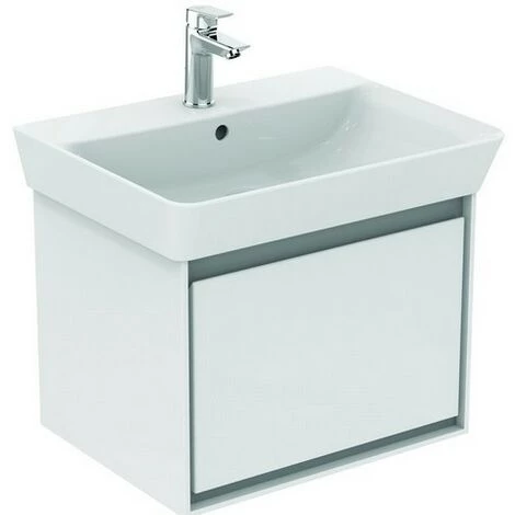 Meuble sous-lavabo avec kit de fixation. 1 extrait. Pour combinaison avec le lavabo Connect Air Cube 600 mm. Dimensions extérieures (LxPxH) : 535x412x400 mm Fabricant : Ideal Standard Series : Connect Air N° d’article : E0846B2