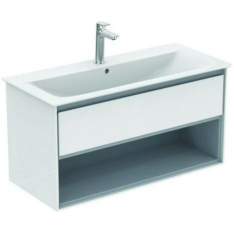 Meuble vasque meuble vasque avec kit de fixation. 1 tiroir, 1 compartiment ouvert. Extraits : Softclosing Surface : Laqué blanc brillant / mat Fabricant : Ideal Standard Series : Connect Air Dimensions : 1000x440x517 mm N° pièce : E0828B2