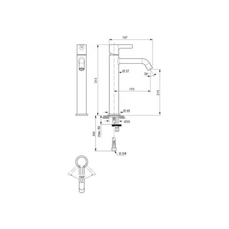 Caractéristiques techniques du mitigeur de lavabo réhaussé Joy Ideal Standard