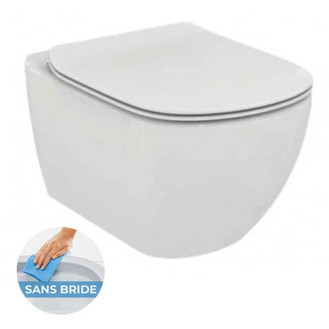 - Ideal Standard TESI – Cuvette AquaBlade sans bride + abattant ultra-fin avec frein de chute (T354601)