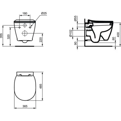Livré pré-monté avec tiges et écrous pour fixation de la cuvette WC
