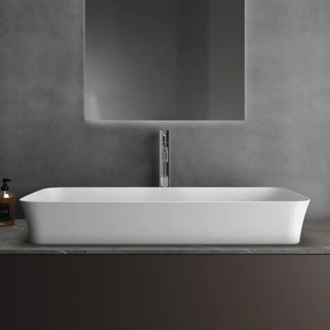 Vasque à poser rectangle 55 x 38 Ideal standard Ipalyss, ciment avec bonde / E2076V9