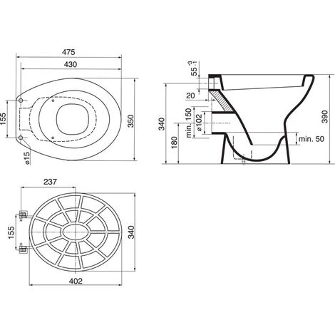 - WC fixe EUROVIT IDEAL blanc V312701 avec grille