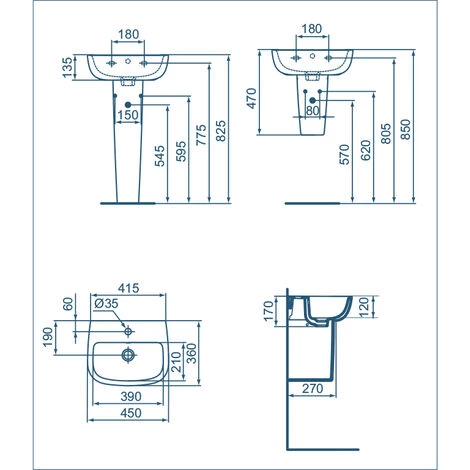 - Code article : T081101 (lavabo) – T282901 (demi colonne)