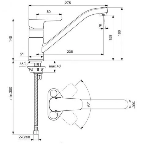 - Filetage : 3/8″