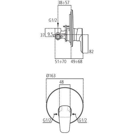 - Typologie; mitigeur de douche intégré;