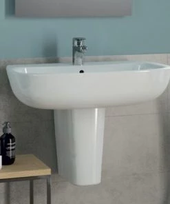 Lavabo De Salle De Bain Suspendu Ideal Standard Esedra 45 Cm Avec Grande Baignoire Avec Demi-colonne