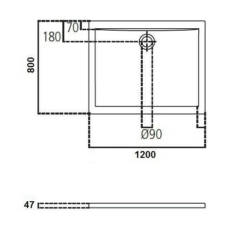 Receveur de douche 120X80 cm rectangulaire en acrylique Ideal Standard Ultraflat avec trou d’évacuation Ø90 mm