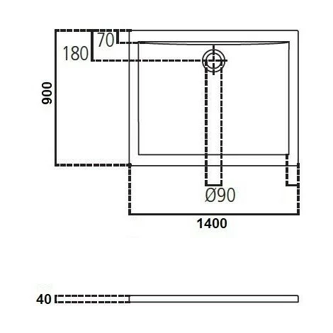 Receveur de douche 140X90 cm rectangulaire en acrylique Ideal Standard Ultraflat avec trou d’évacuation Ø90 mm