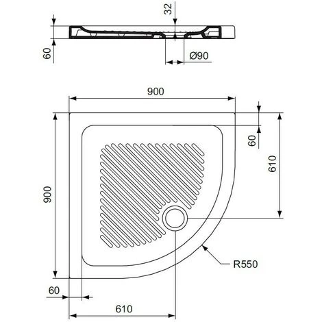 Receveur de douche angulaire 90X90 cm en céramique Ideal Standard Connect blanc antidérapant