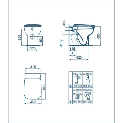 Sanitaires dos au mur Esedra Ideal Standard avec évacuation traduite